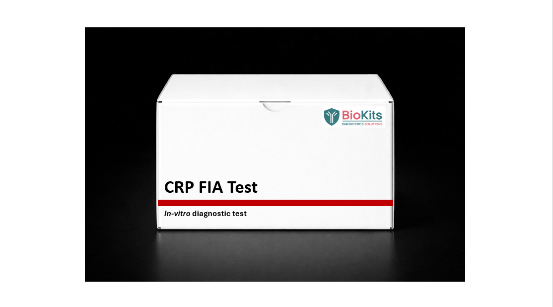 The Biokits CRP FIA Test is an In-vitro diagnostic, immunochromatographic assay for the Quantitative detection of C-reactive protein (CRP) in human whole blood, serum, or plasma. This test is intended for professional use only.