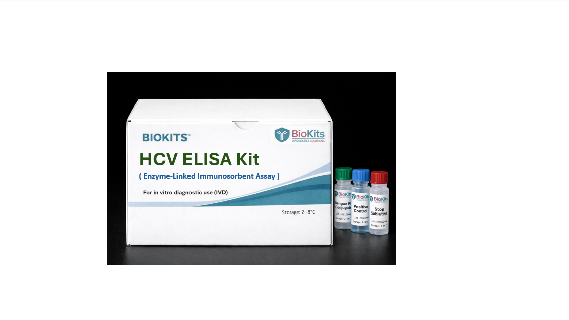 Biokits HCV ELISA Kit is a solid phase enzyme linked immunoabsorbent assay for the qualitative detection of IgG to Hepatitis C virus (HCV) in human serum or plasma.