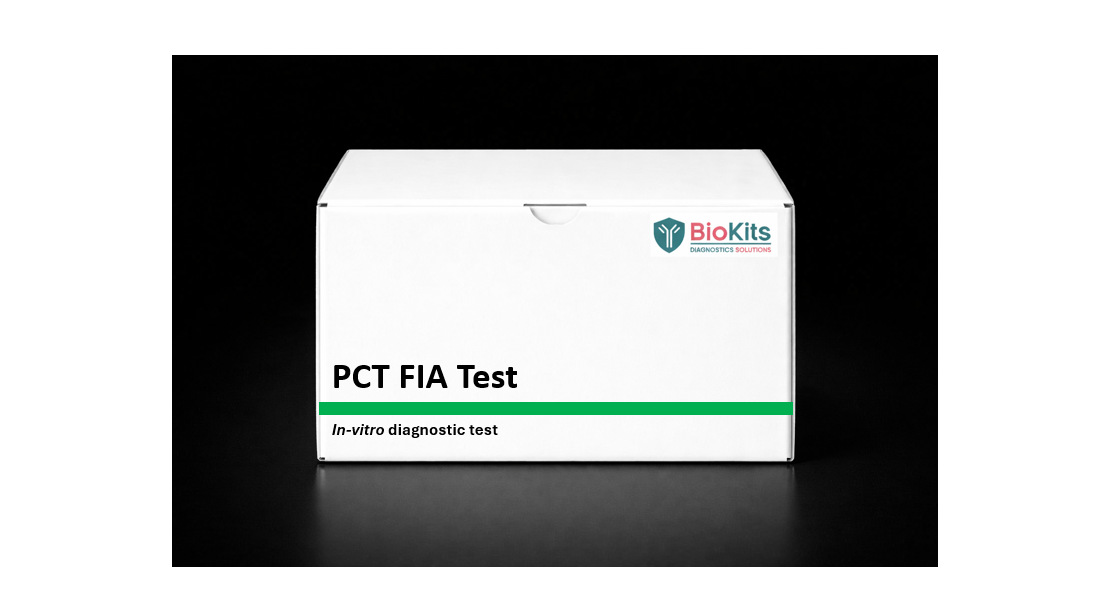 The Biokits Procalcitonin (PCT) Rapid Test is an in-vitro diagnostic, immunochromatographic assay for the Quantitative detection of Procalcitonin (PCT) in human serum or plasma and Whole Blood. This test is intended for professional use only